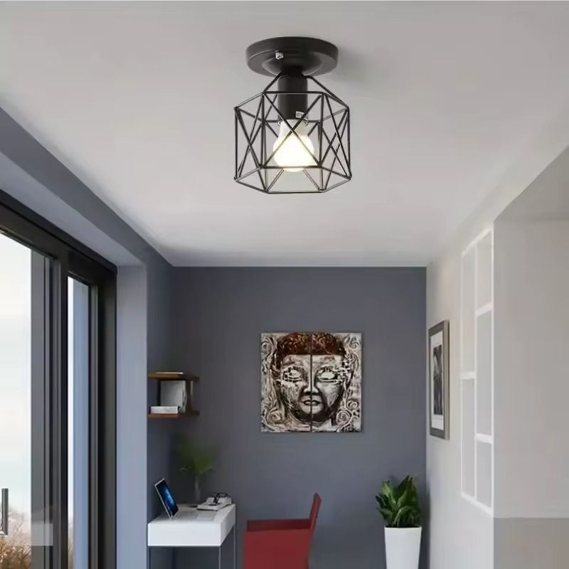 Ce plafonnier géométrique doré noir capte immédiatement le regard avec sa structure filaire polygonale aux lignes architecturales audacieuses. La cage bicolore génère des jeux d’ombres graphiques sur vos murs et plafonds tout en laissant la lumière se diffuser généreusement.