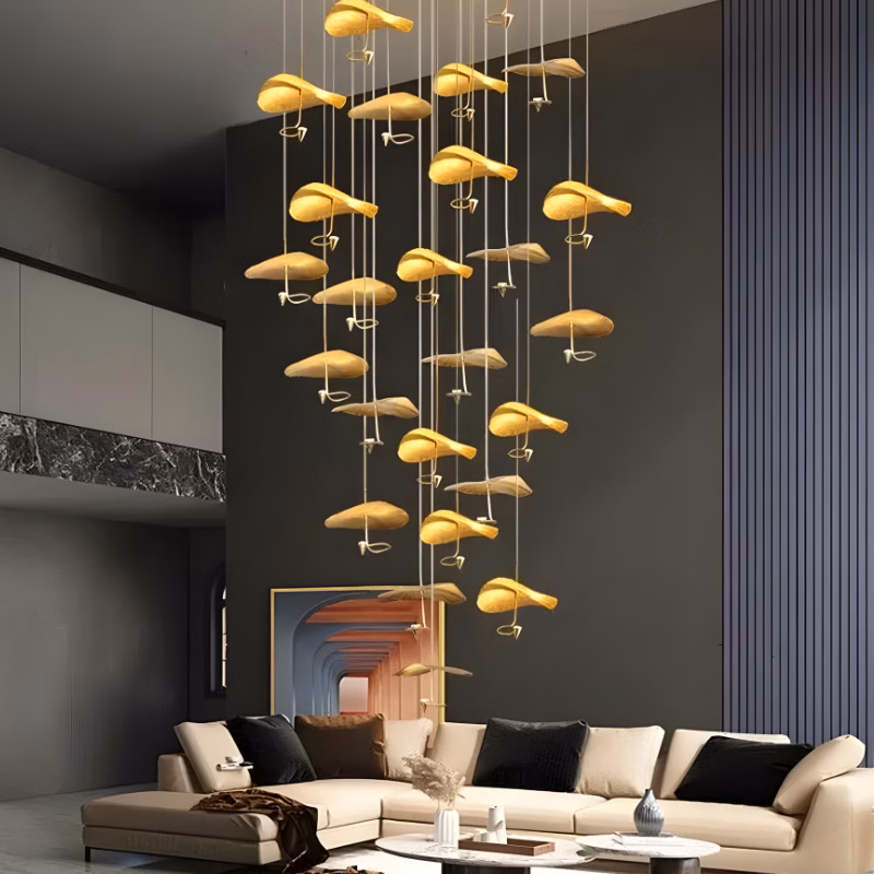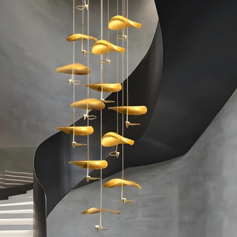 Parfaite pour cages d’escalier, halls d’entrée spacieux, atriums ou espaces à double hauteur, elle apporte une touche de luxe architectural remarquable. Son esthétique moderne et audacieuse s’intègre dans les intérieurs contemporains haut de gamme recherchant prestige et impact visuel fort.