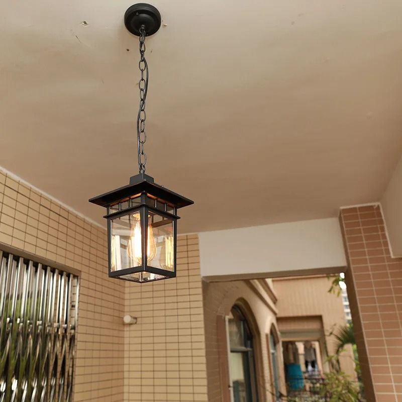 Suspension lanterne extérieure aluminium verre rétro