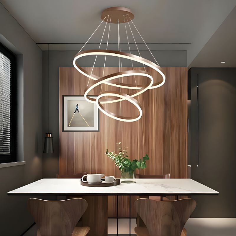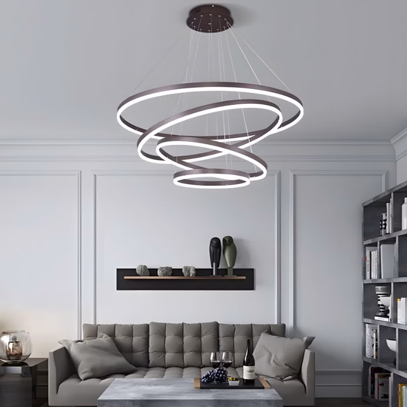 Cette suspension LED captive par ses anneaux concentriques qui dessinent une spirale aérienne et graphique. Son design minimaliste apporte une touche d’élégance moderne à vos espaces de vie, créant un point focal remarquable au-dessus d’une table à manger ou dans un salon contemporain.
